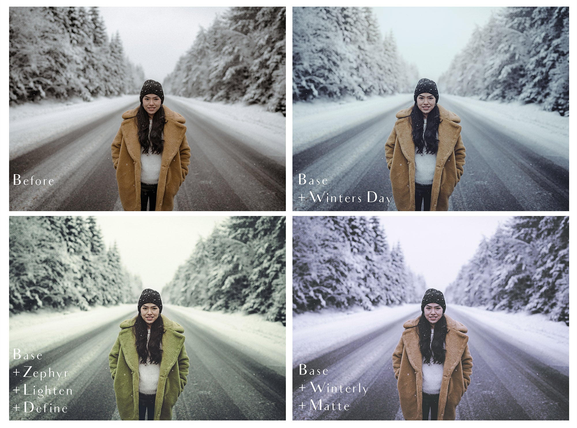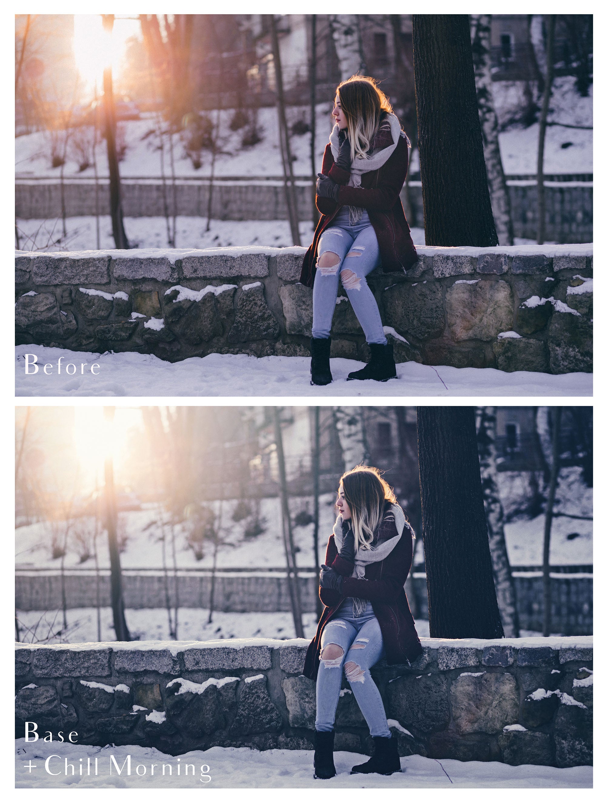 BASE action. - This is for all your contrast, light and warming tone adjustments.